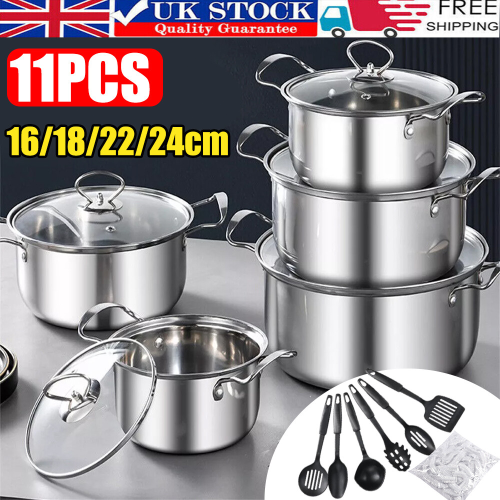 11PCS Induction Non Stick Stainless Steel Cookware Cooking Pot Pan With Lids Set