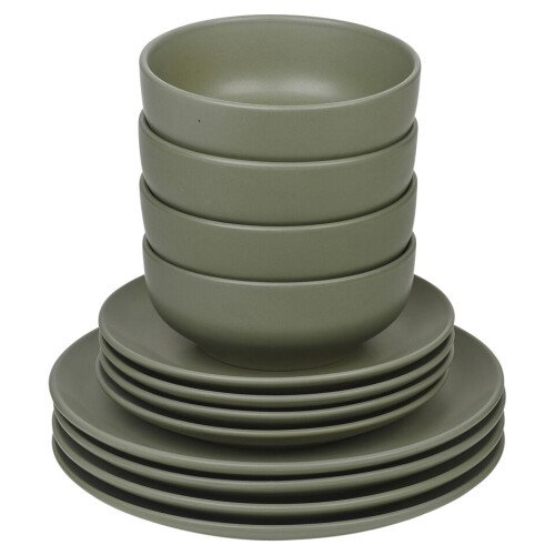 Colour: GreenMaterial: StonewareDinner Set Size: 12 PiecesFeatures: Dishwasher Safe, Microwave Safe