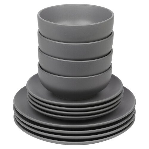 Enjoy this durable stoneware set with its smooth, colored finish. It is also microwave, fridge and dishwasher safe.  The sets are available in green, white, black, or grey.