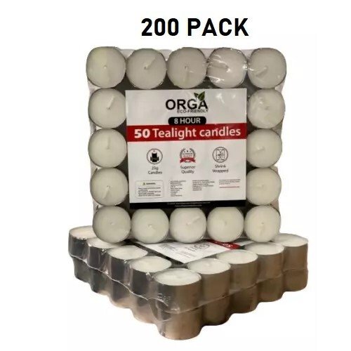 SummaryThese unscented tealight candles are perfect for creating ambiance at parties, dinners, and special events. They are also ideal for restaurants, hotels, or home use.Each candle burns for approximately 8 hours, though this may vary slightly due to environmental conditions.Tested to ensure they do not spit or smoke, these candles are 100% safe while burning.Each candle measures approximately 3.7 cm in diameter and 2.1 cm in height, fitting easily into standard tealight holders.Widely chosen by restaurants, hotels, pubs, spas, and other industries. Simply place them in holders and enjoy the cozy, romantic glow.200 Tea Night Lights Candles 8 HOUR LONG BURN Unscented – 8HR Description200 Tea Night Lights Candles 8 HOUR LONG BURN Unscented Tealights Nightlight 8HR