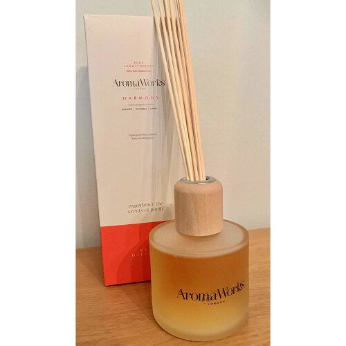 SummaryBoxed200MlAromaWorks Harmony Reed Diffuser DescriptionThe Calming, mood enhancing effect of the natural Rose in this 100% pure essential blend is complimented by the uplifting fragrances of Bergamot and Mandarin creating a sense of wellbeing.