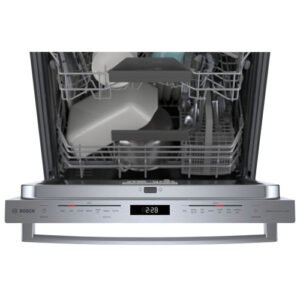 The Bosch 800 Series 24″ built-in dishwasher delivers outstanding cleaning performance while maintaining whisper-quiet operation. Designed to fit seamlessly into modern kitchens, this dishwasher features a durable stainless steel tub that enhances drying results and prevents odors.