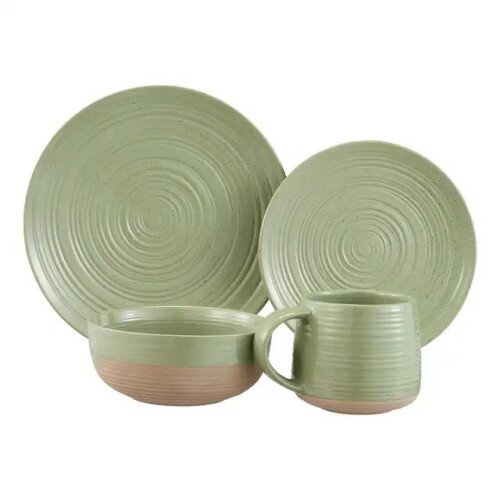 (Green) Better Homes & Gardens- Abott White Round Stoneware 16-Piece Dinnerware Set
