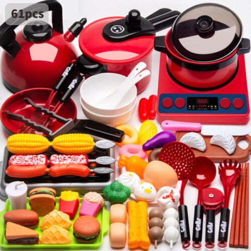 Summary61-piece setRealistic designEducational valueSuitable for childrenKids Play 61pcs Childrens Toy Kitchen Cooking Utensils Pots Set Pans Accessories Description