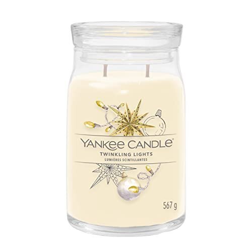 SummaryA blend of sparkling citrus scents drifting on warm muskAuthentic ingredients and premium soy wax blend for vibrant colour and a clean, even burnSleek glass jar with hand-illustrated fragrance designs for a décor-friendly finish that complements any spaceDouble wicks made of 100% natural fibres enhance the ambience and provide a room-filling fragrance experienceWith an on-trend design and long burn time, the Signature Collection makes an ideal gift for every occasionSignature Scented Candle | Twinkling Lights Large Jar Candle with Double Wicks | Soy Wax Blend Long Burning Candle | Perfect Gifts for Women DescriptionYankee Candle Signature Scented Candle | Twinkling Lights Large Jar Candle with Double Wicks | Soy Wax Blend Long Burning Candle | Perfect Gifts for Women